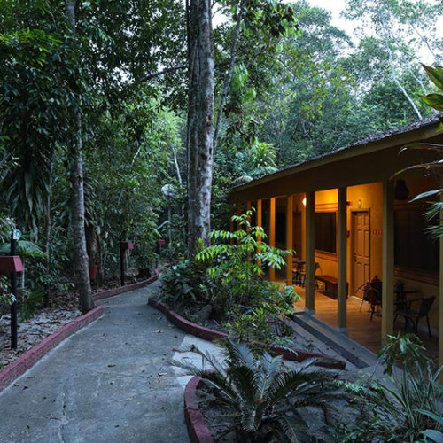 Saída do hotel em canoas (motorizadas ou não) para apreciar os sons da noite na selva, com possibilidade de focar pequenos jacarés (ou outros animais de hábitos noturnos) . Uma vez que o jacaré esteja paralisado pela luz forte da lanterna dos guia, os olhos do animal brilham como pequenas luzes vermelhas, permitindo assim localizá-lo . O guia então tentará pegar cuidadosamente o jacaré com suas próprias mãos e trazê-lo a bordo, para explicar aos clientes sobre este réptil. Em seguida, o pequeno animal é devolvido com cautela ao rio.