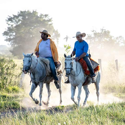 Realizado a cavalo, acompanhando os “peões” no manejo com o gado, conhecendo o dia do homem pantaneiro.